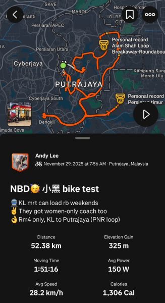 I rode in Putrajaya PNR 1.0 for 50km before I packup.